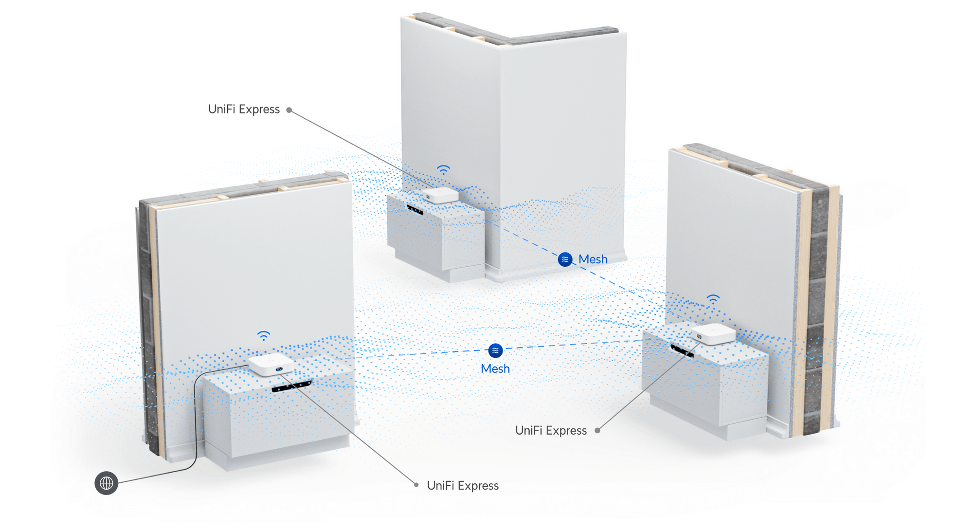 Seja em uma única unidade ou em múltiplas conectadas por uma rede Ethernet, o UniFi Express oferece uma flexibilidade excepcional. Amplie sua rede sem limites, utilize várias unidades para uma expansão eficiente via mesh, ou transforme espaços desprovidos de tomadas em áreas conectadas, simultaneamente funcionando como extensor de Ethernet e WiFi.